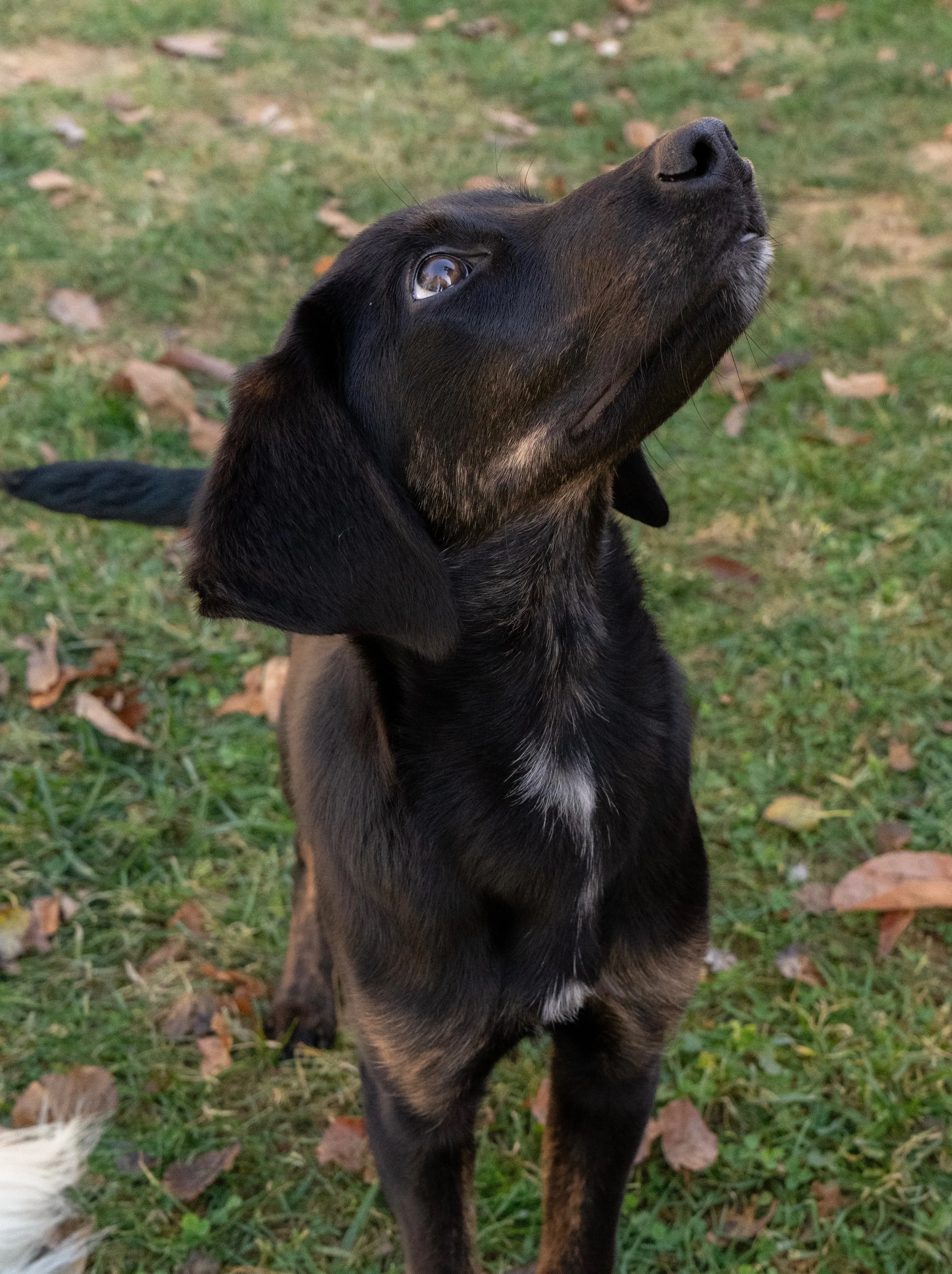Margo is our newest family member. She’s a mixed rescue and just under a year old now. She loves playing with Douglas and thinks it’s funny she can run faster than him. She loves to talk, though the cats aren’t very fond of that trait. Margo is very smart and loves playing with dog puzzles. She’s the happiest dog we’ve met, and always wagging her tail up high. When she’s not running around or being silly with her big brother, she’s the best little cuddle bug.
