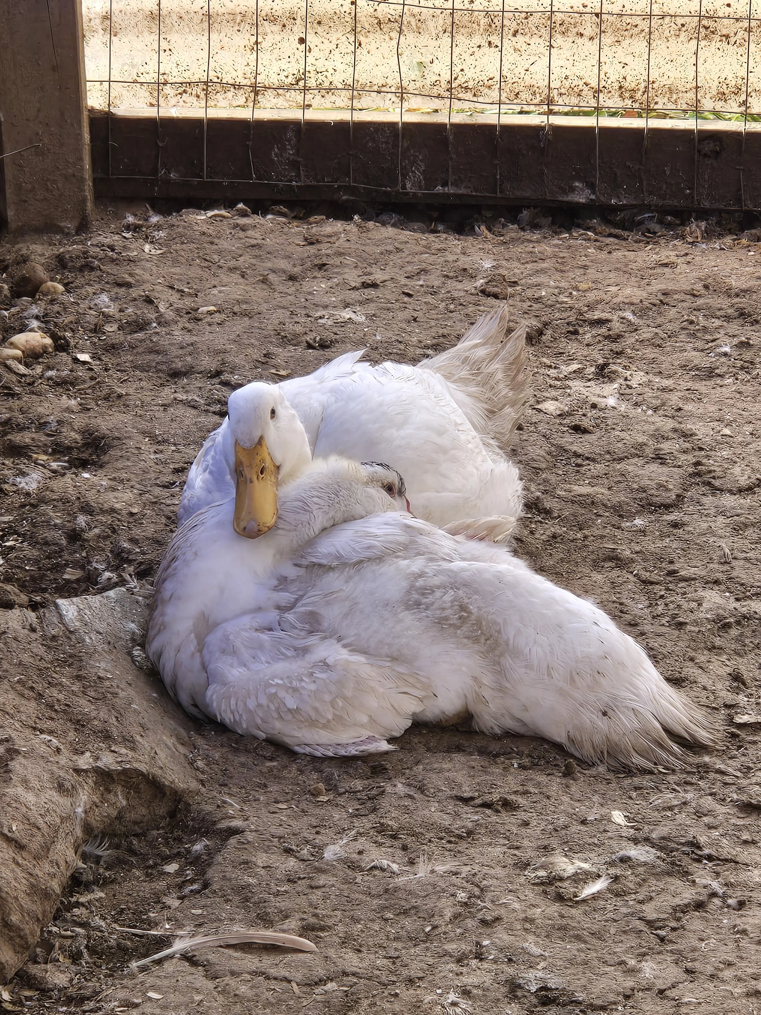 The ducks, our flock contains 10 ducks, ranging in age from 2 years old to 6 months old. We have 4 Khaki Cambells, 2 Crested ducks, 1 Muscovy & 3 Jumbo Pekins. They love to make a big old mess and love to scream at you until you give them the snacks they want. Their favorite snacks are fresh picked grass or cut up lettuce.